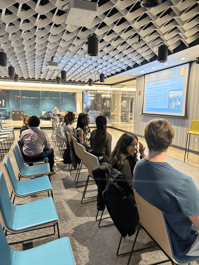 Earlier this semester, the Center for Career Development’s student leaders hosted an event, “Code-Switching & the Workplace,” at the Howard Thurman Center. We are excited to share some photos, highlights, and takeaways from this event with the BU community!